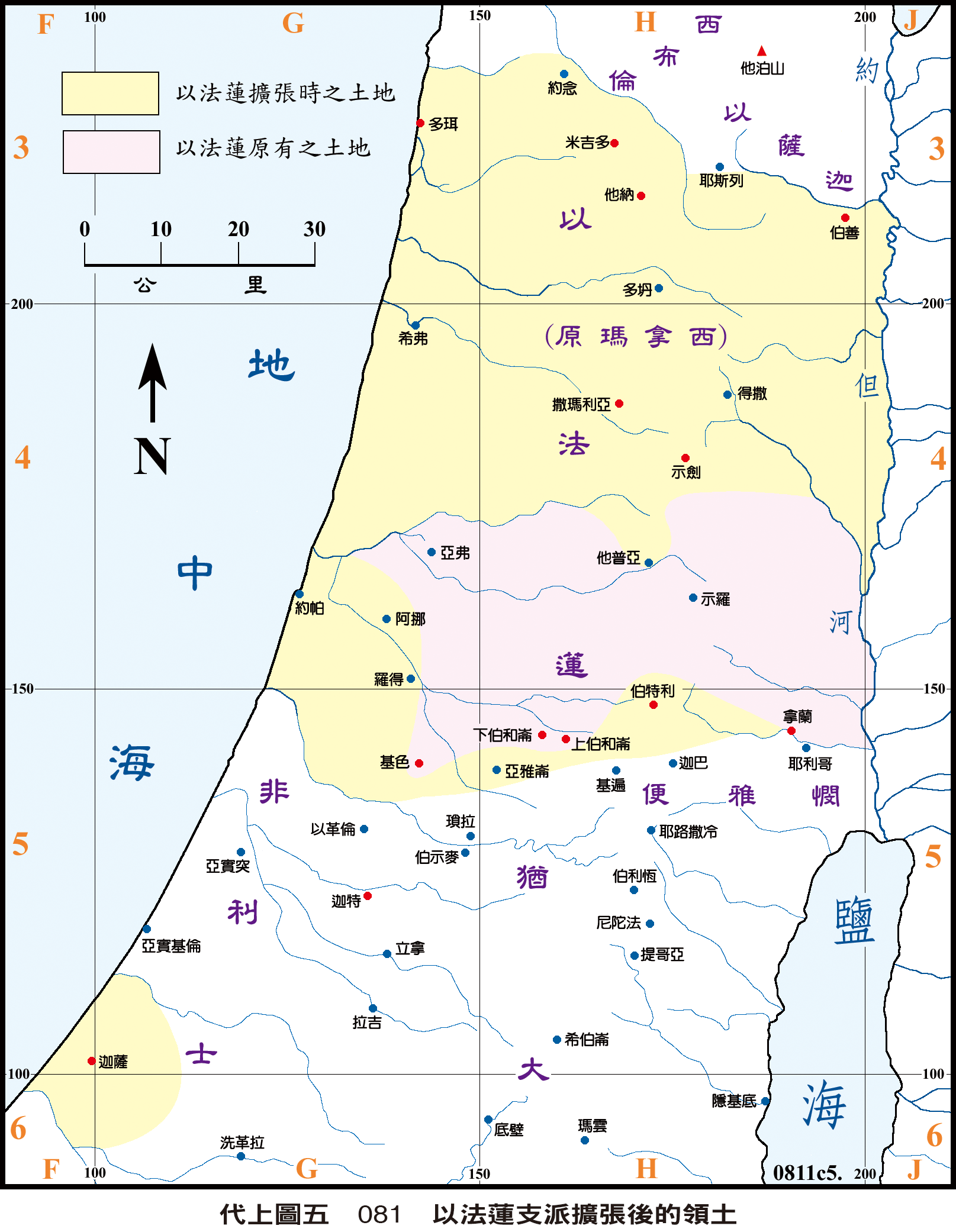 81 代上圖五 081 以法蓮支派擴張後的領土〈代上圖五〉以法蓮支派擴張後的領土