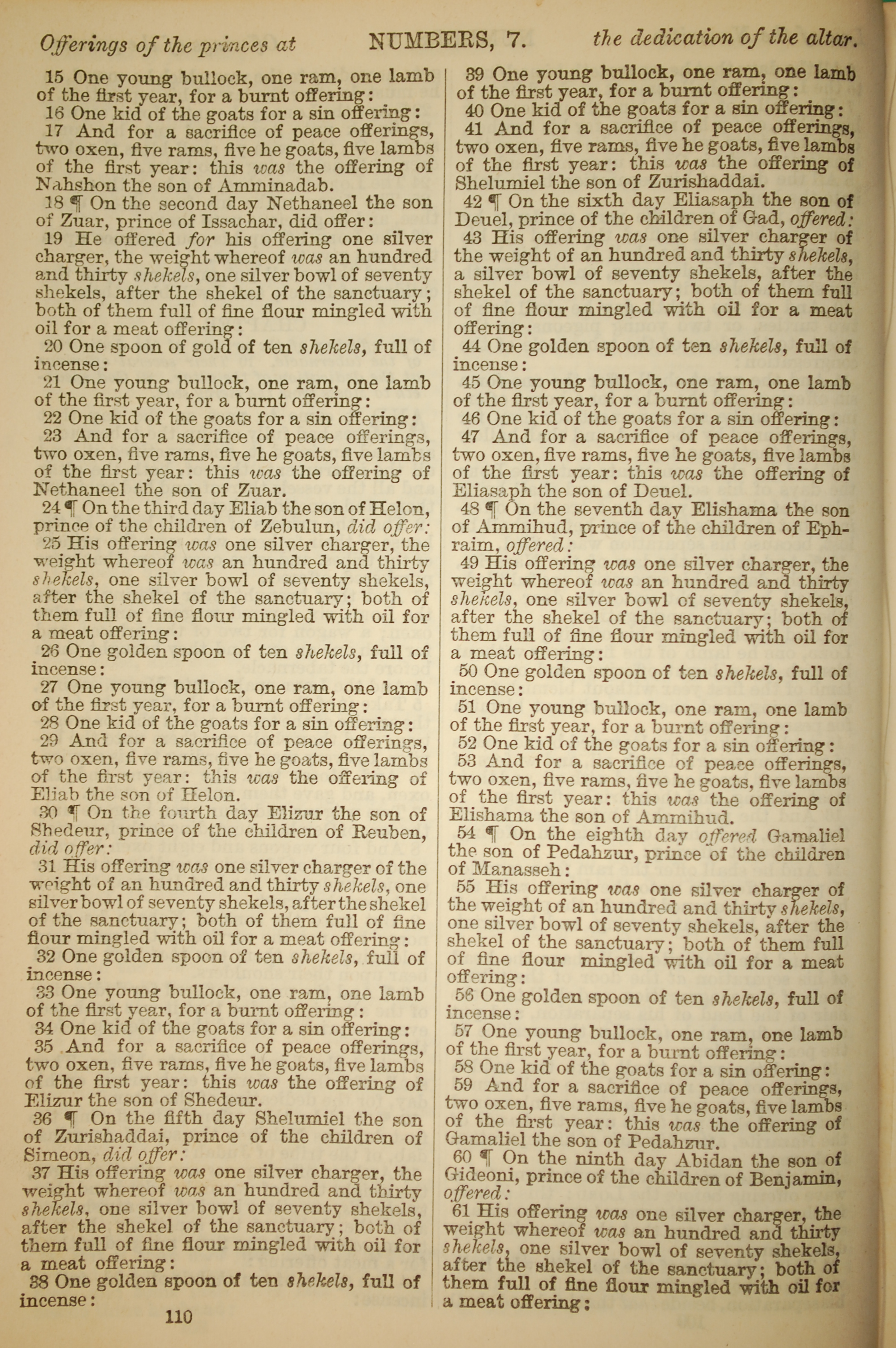1886年英文圣经 民数记 7 章 15 节到 7 章 61 节