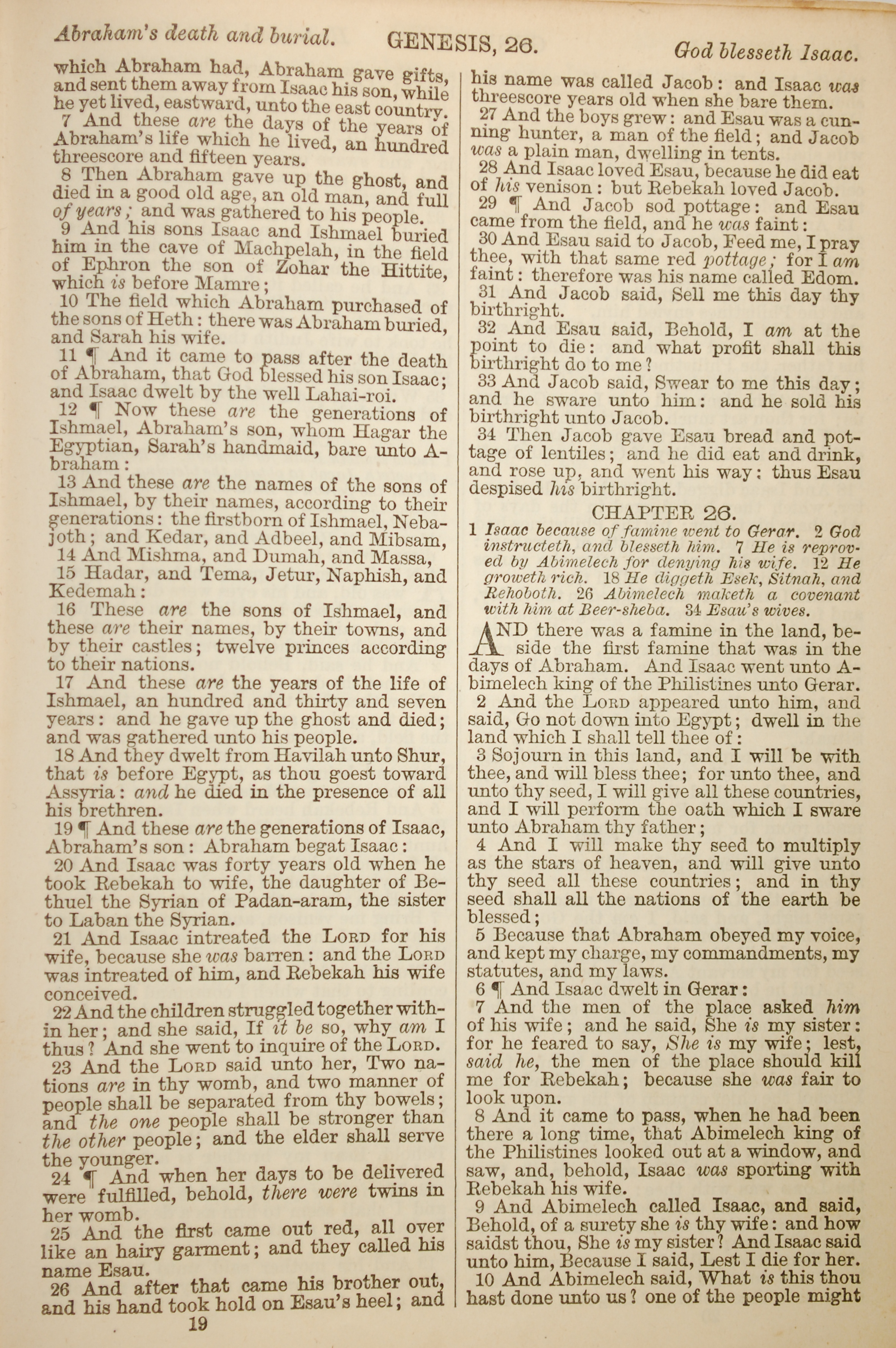 1886年英文圣经 创世记 25 章 7 节到 26 章 10 节