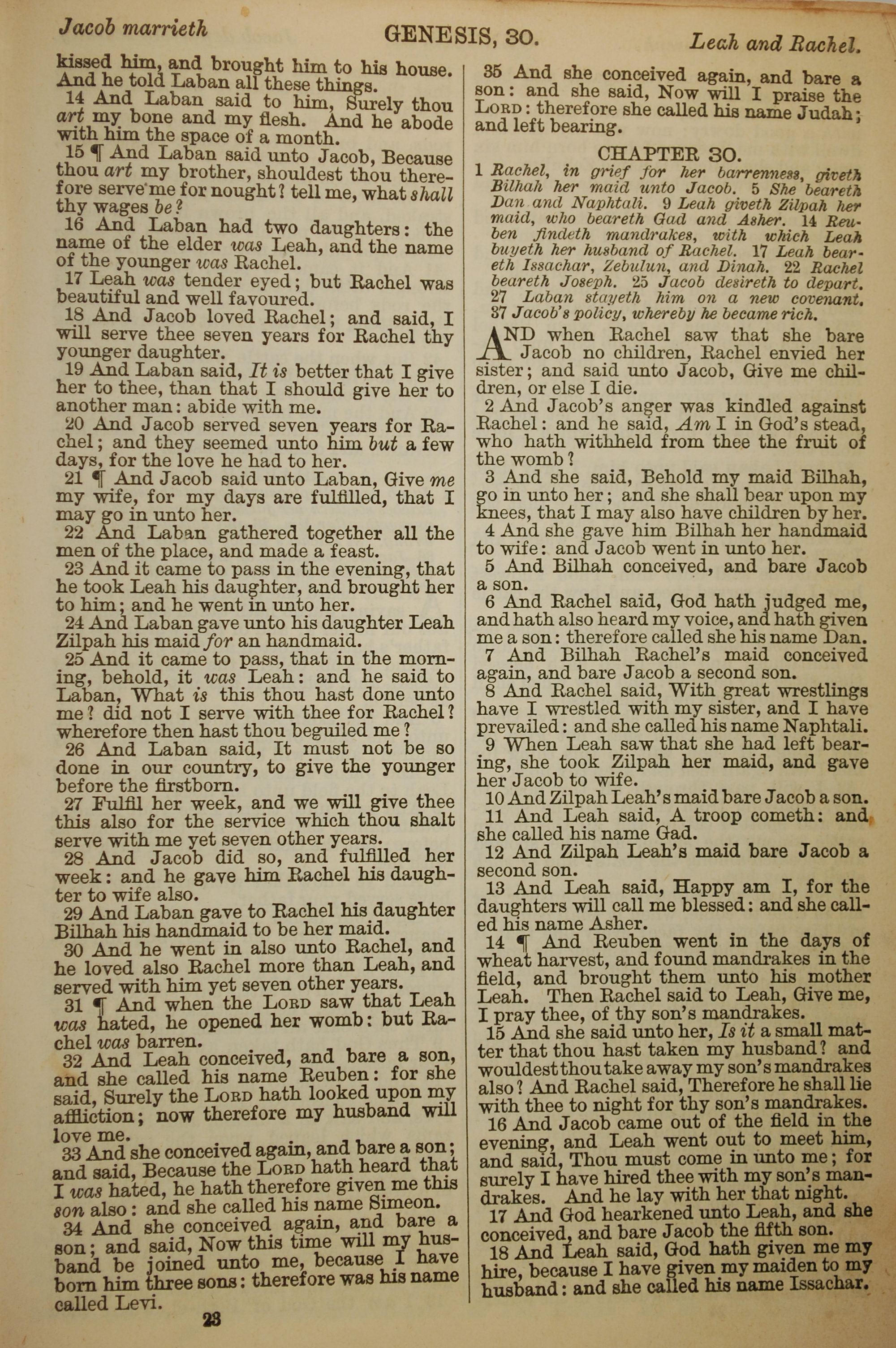 1886年英文圣经 创世记 29 章 14 节到 30 章 18 节