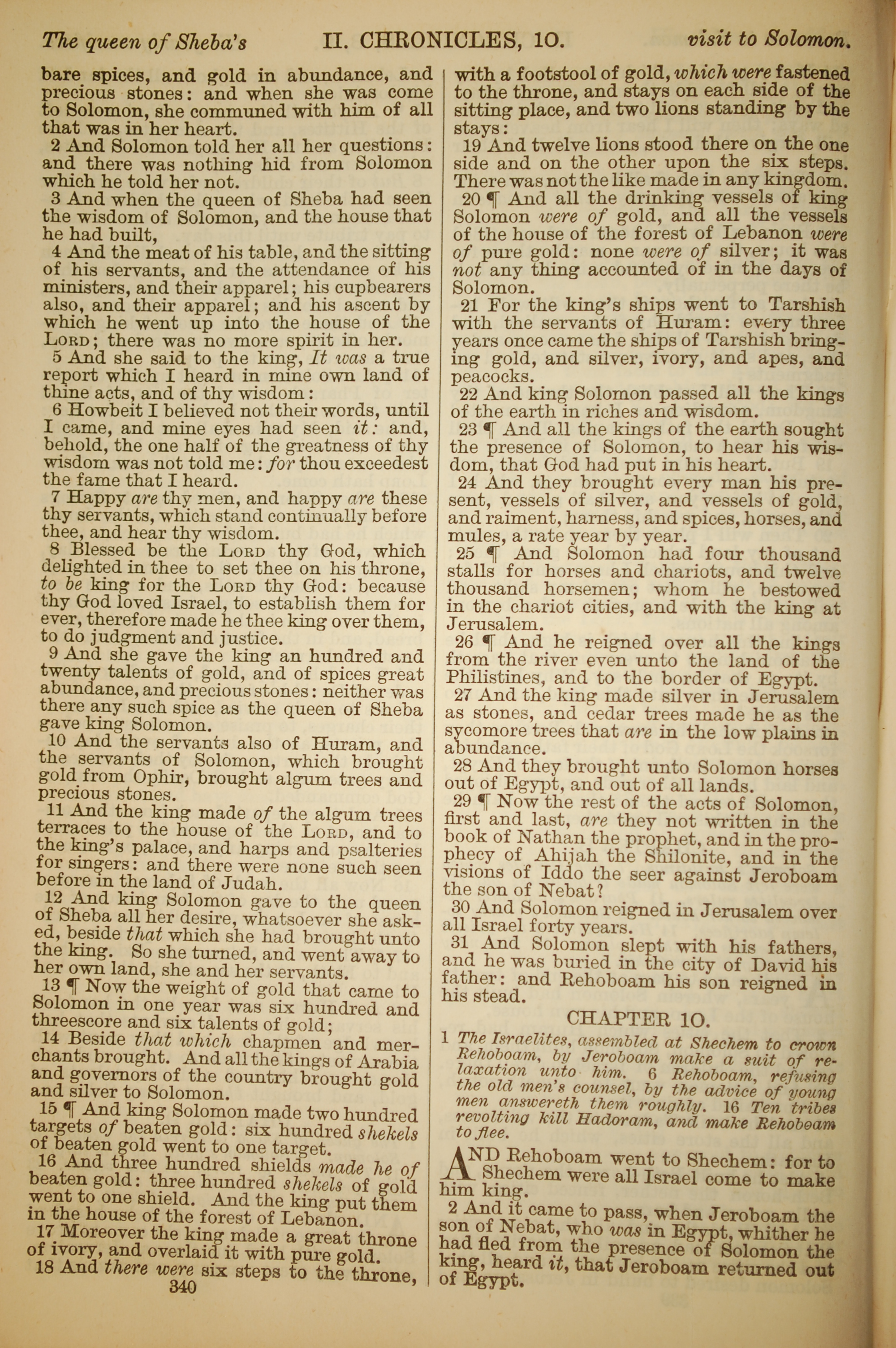 1886年英文圣经 历代志下 9 章 2 节到 10 章 2 节