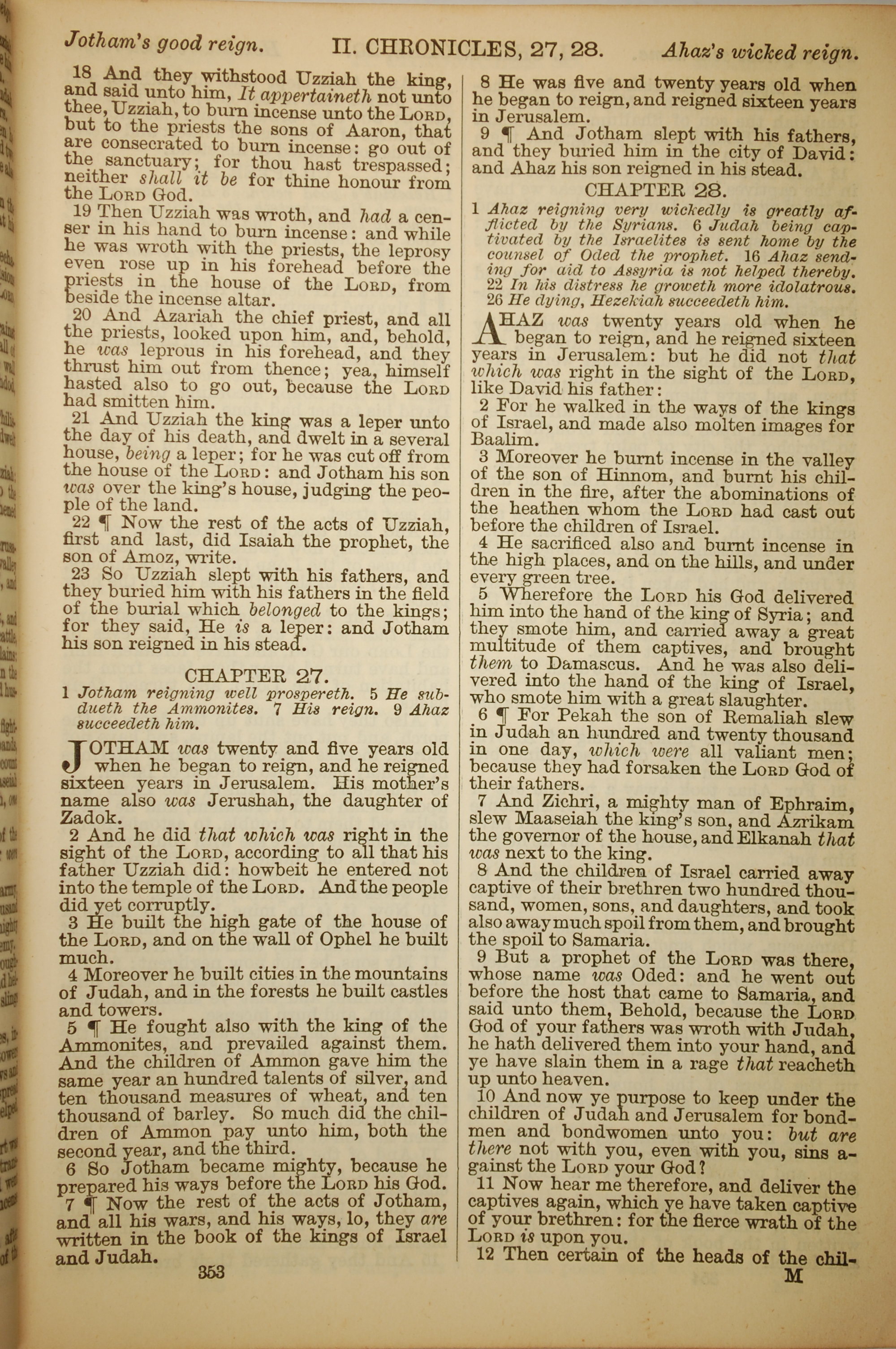 1886年英文圣经 历代志下 26 章 18 节到 28 章 12 节
