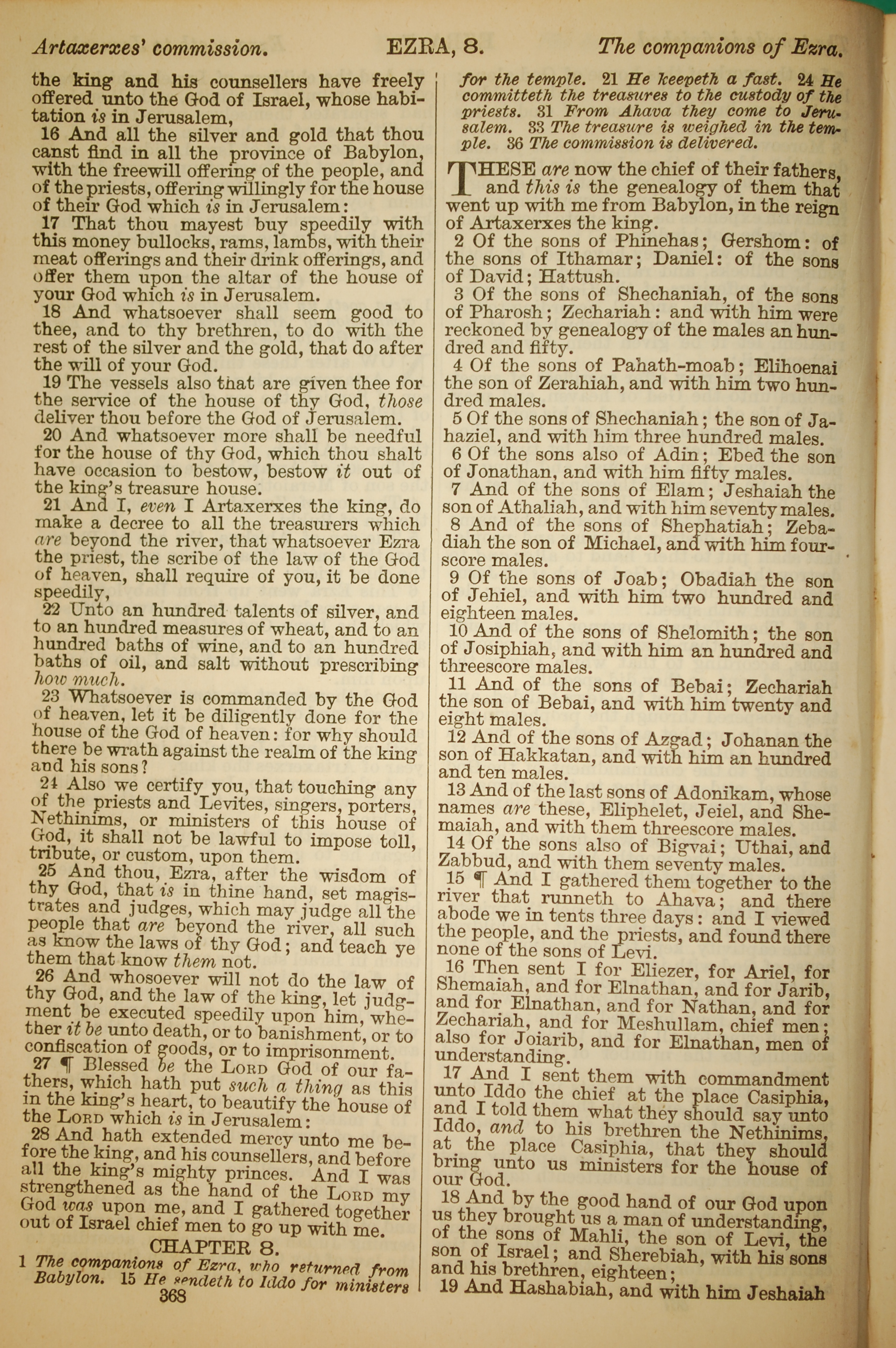 1886年英文圣经 以斯拉记 7 章 16 节到 8 章 19 节