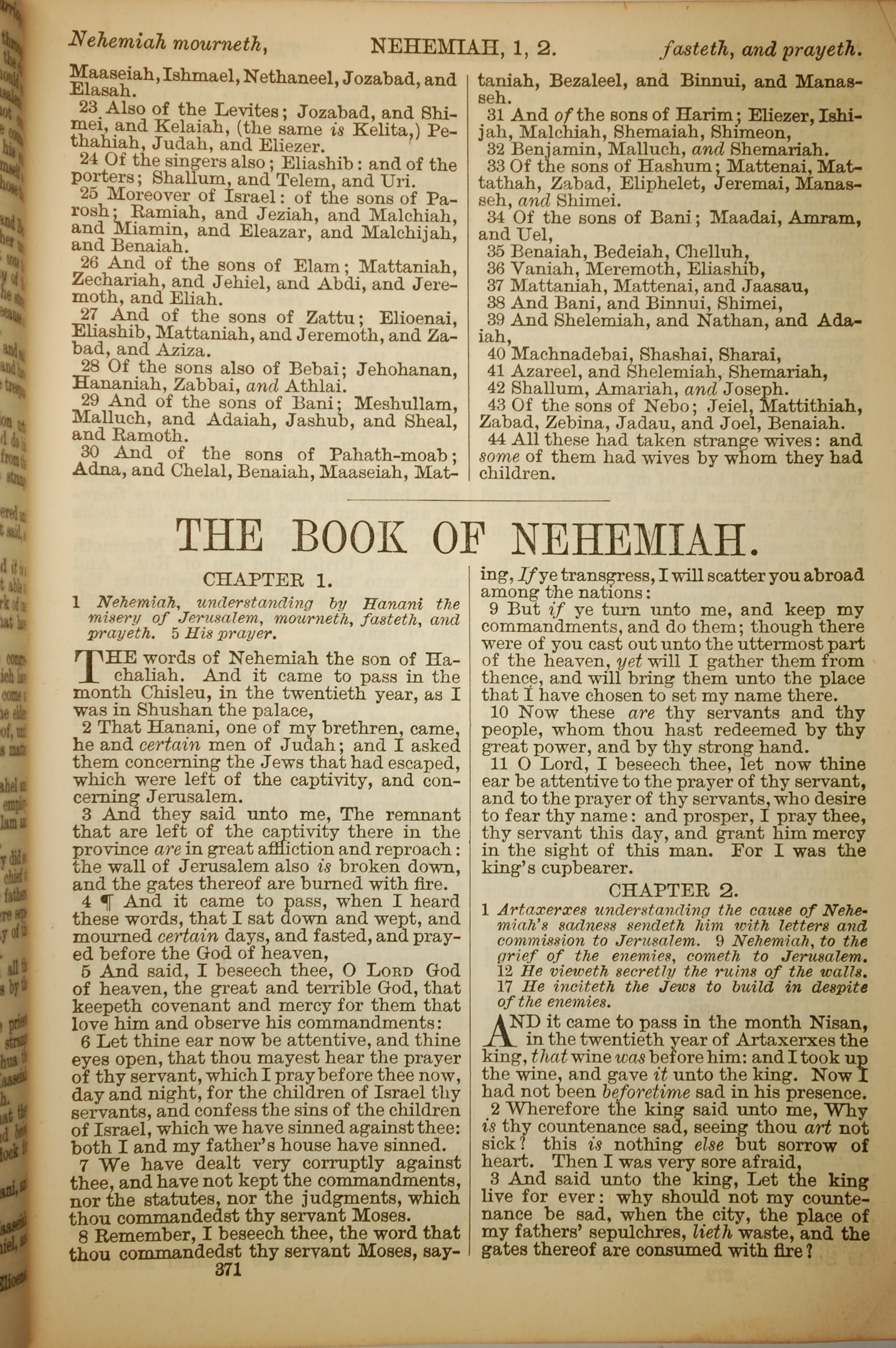 1886年英文圣经 尼希米记 1 章 1 节到 2 章 3 节