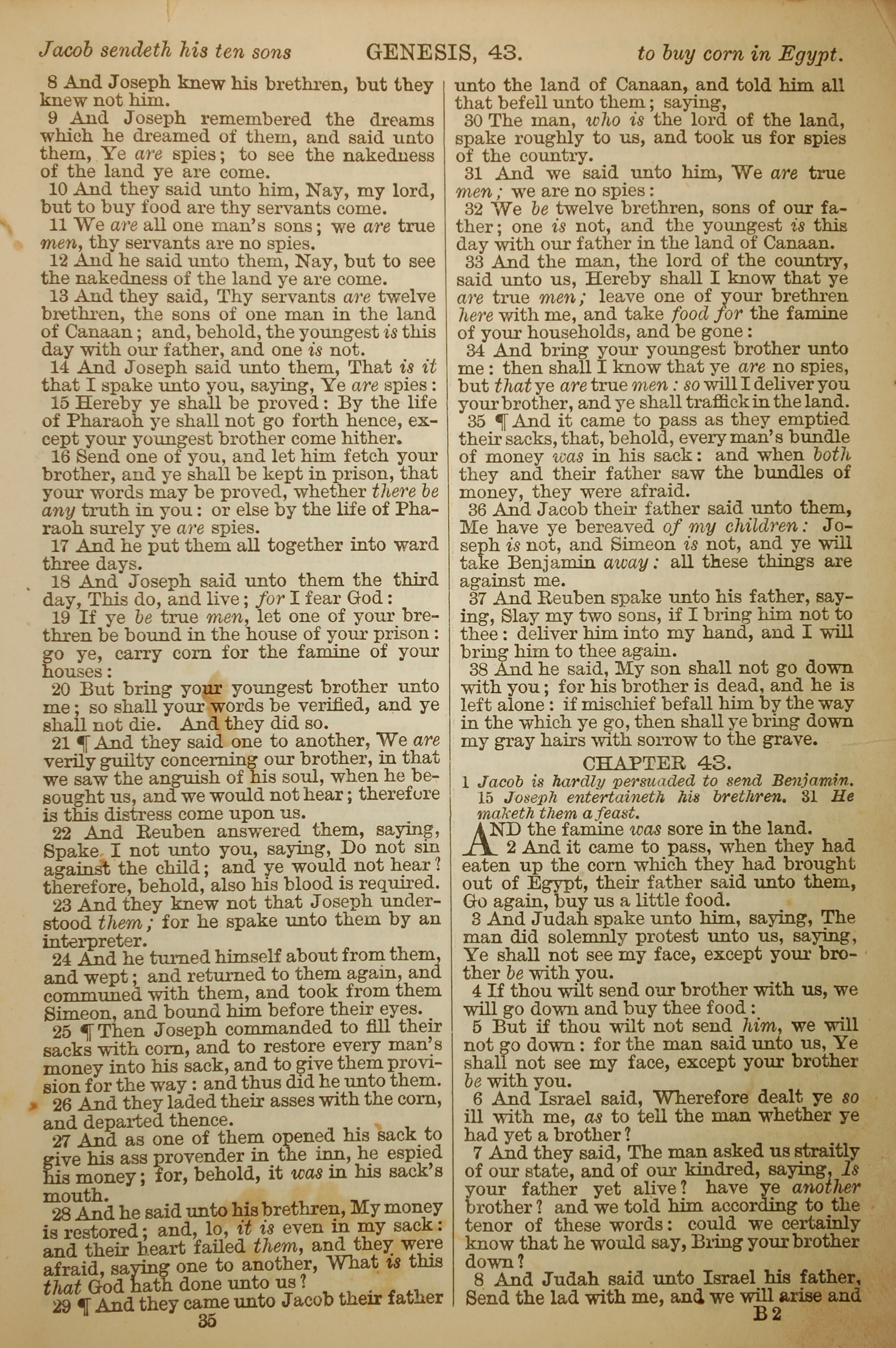 1886年英文圣经 创世记 42 章 8 节到 43 章 8 节