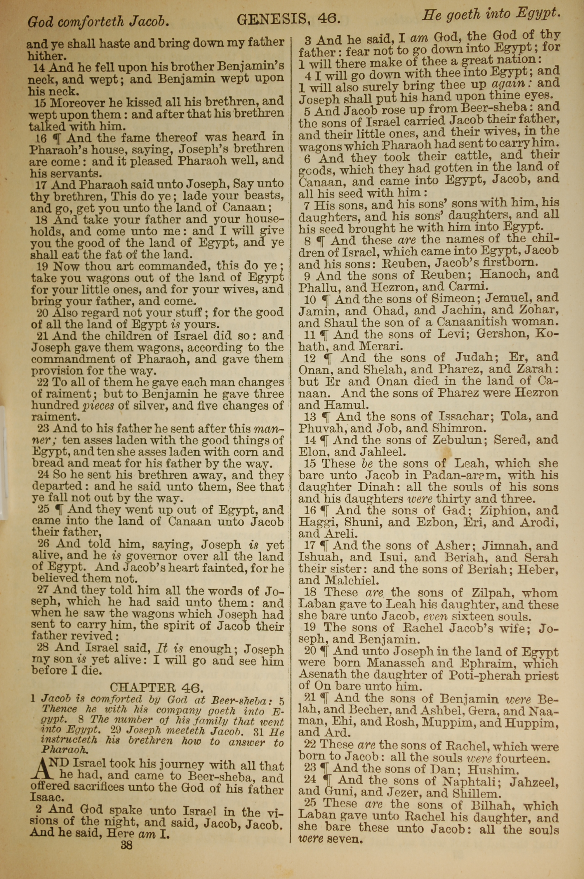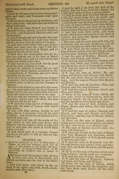 1886年英文圣经 创世记 45 章 14 节到 46 章 25 节