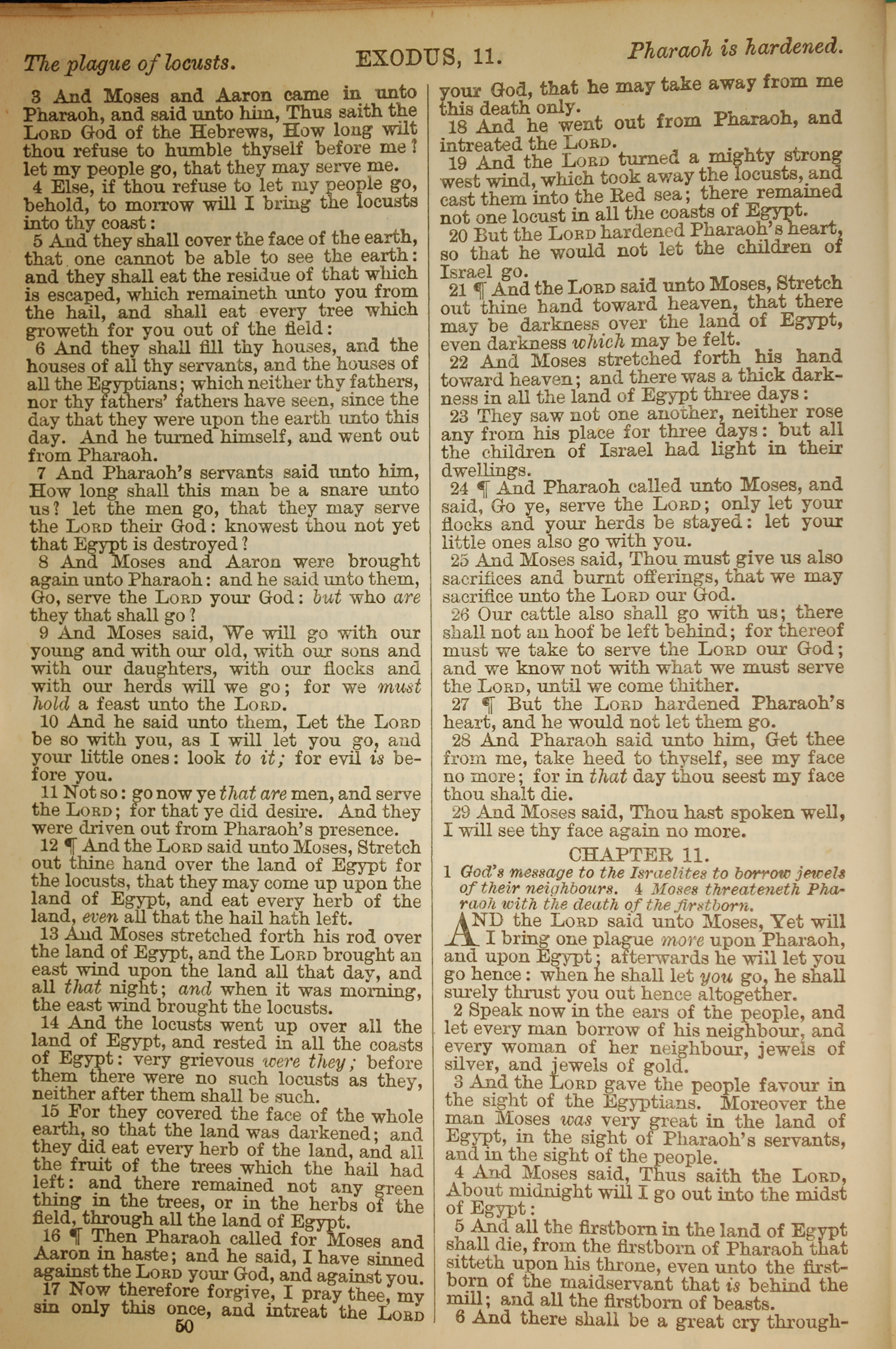 1886年英文圣经 出埃及记 10 章 3 节到 11 章 6 节