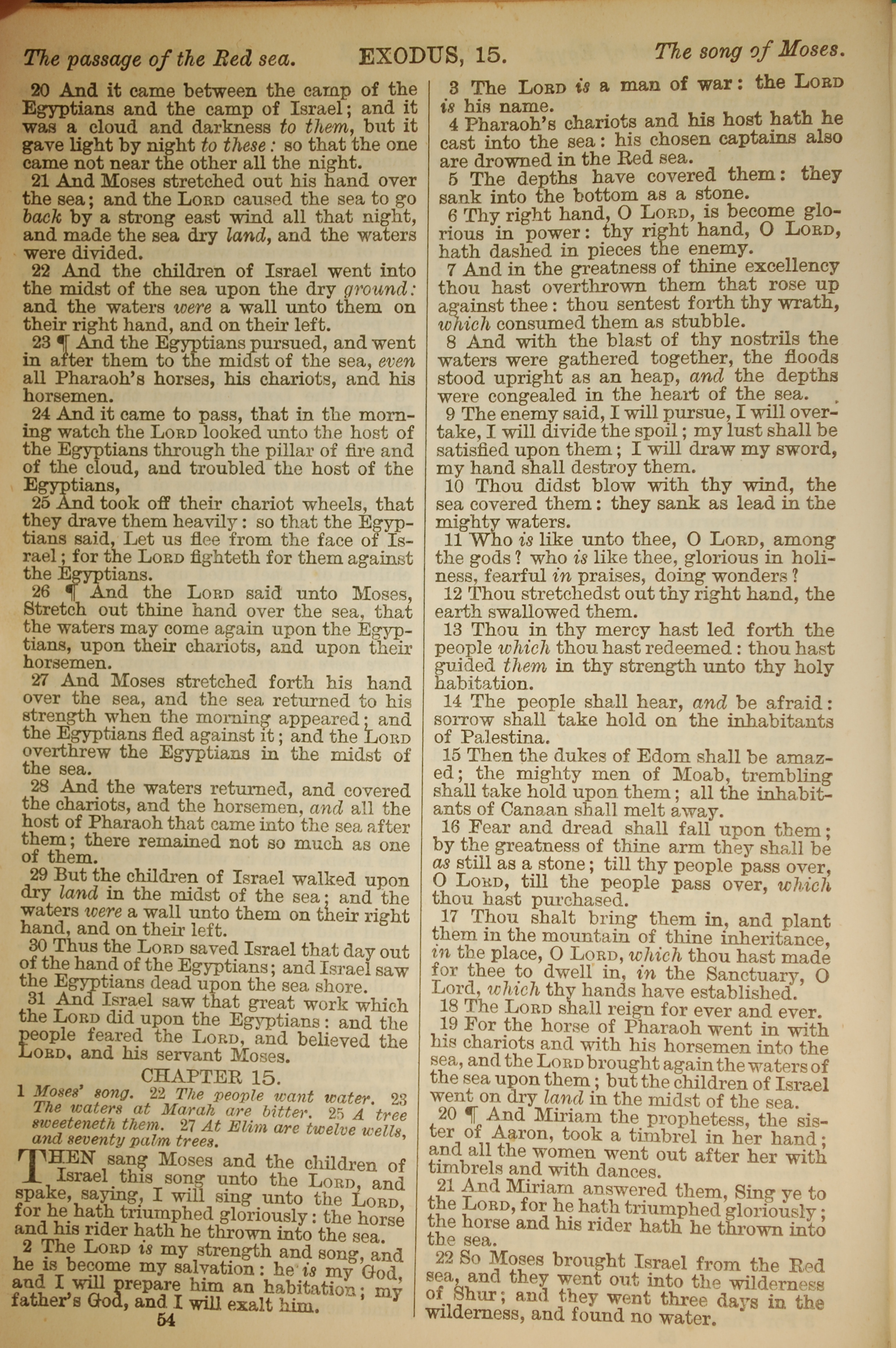 1886年英文圣经 出埃及记 14 章 20 节到 15 章 22 节