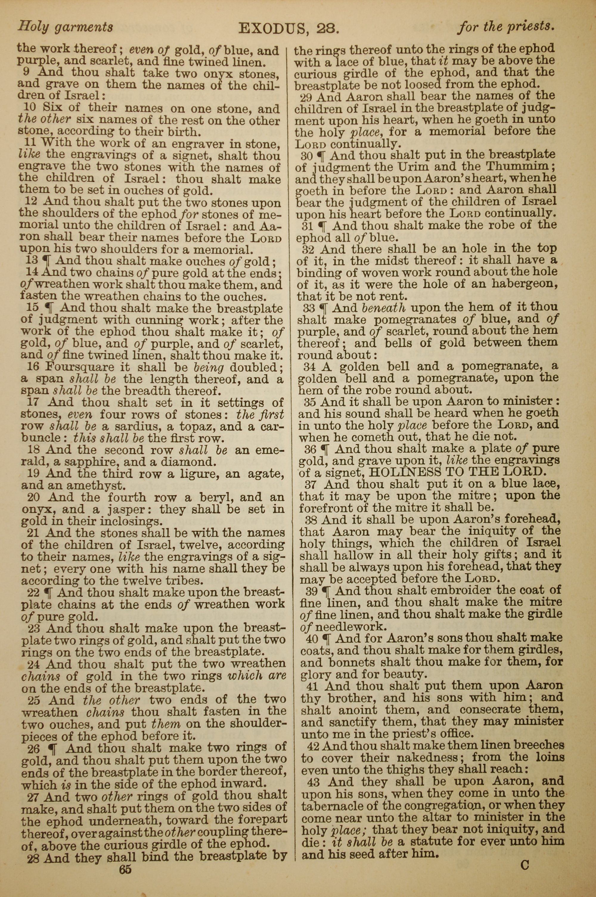 1886年英文圣经 出埃及记 28 章 9 节到 28 章 43 节
