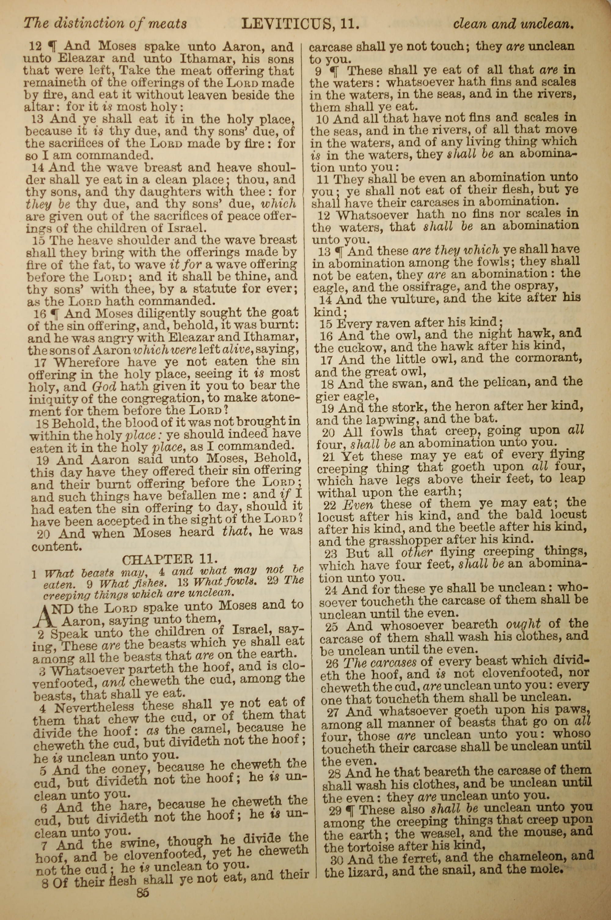 1886年英文圣经 利未记 10 章 12 节到 11 章 30 节