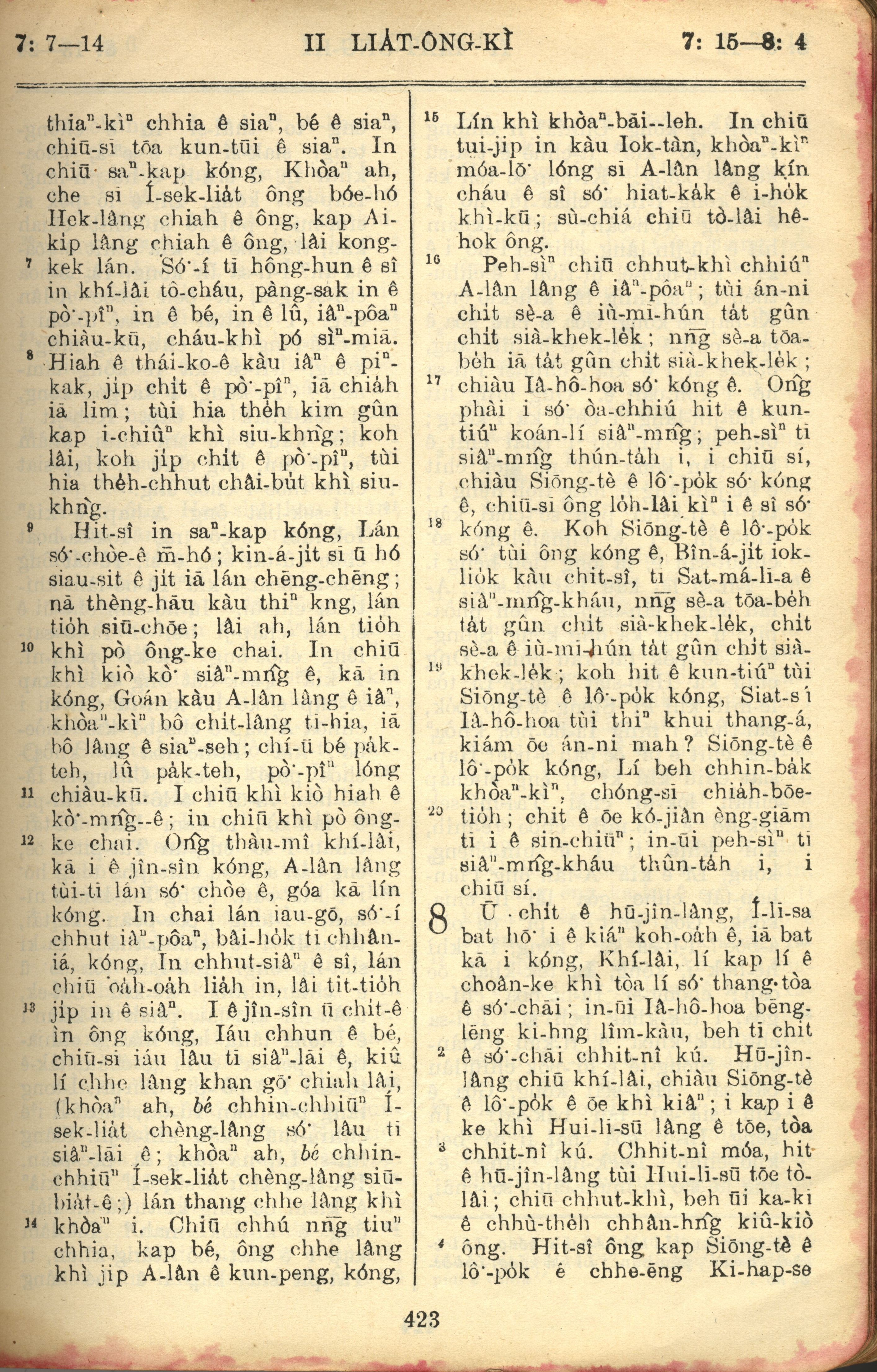 1957年巴克礼全罗台语圣经串珠版 列王纪下 7 章 7 节到 8 章 4 节