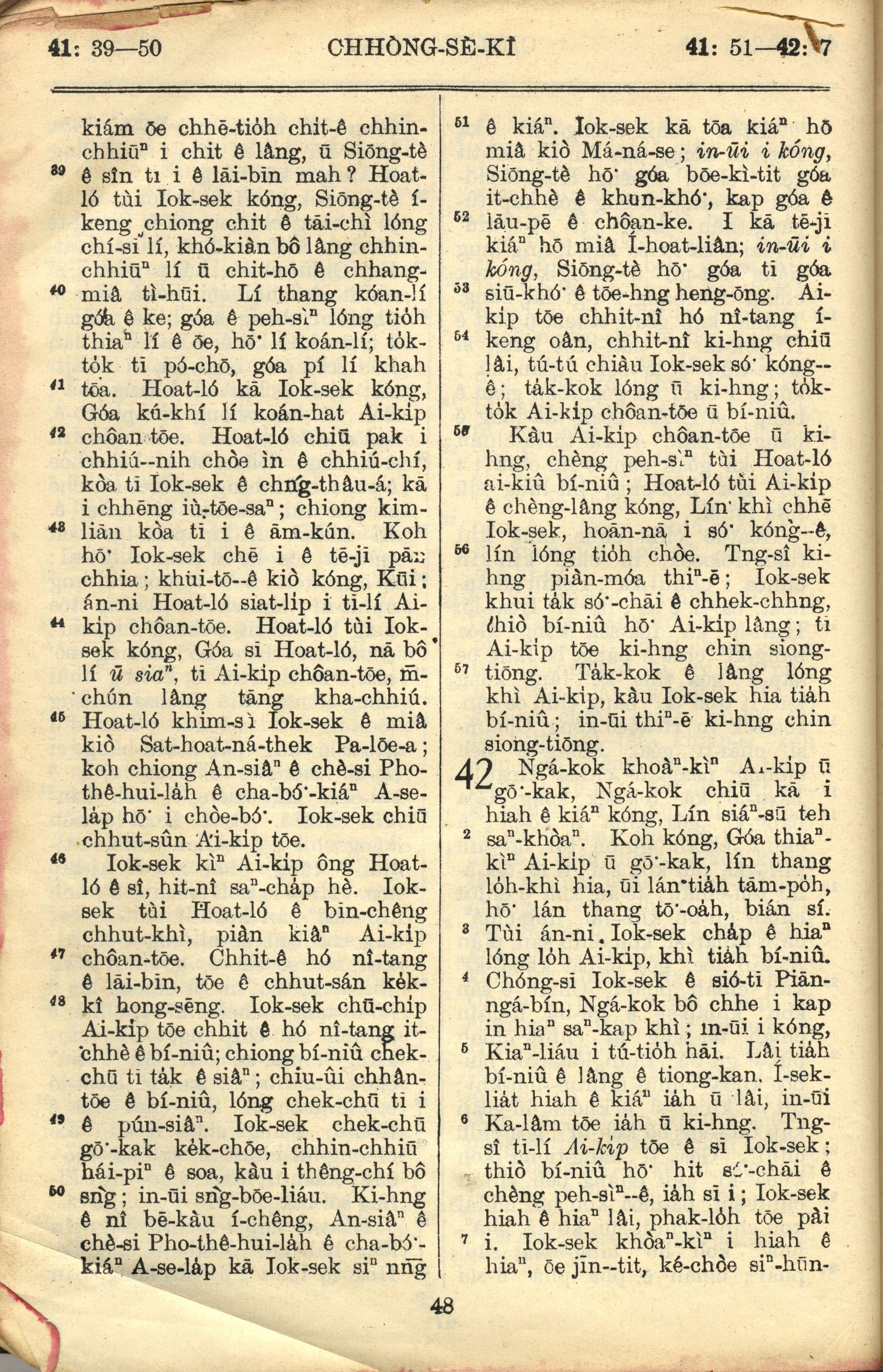 1957年巴克礼全罗台语圣经串珠版 创世记 41 章 39 节到 42 章 7 节