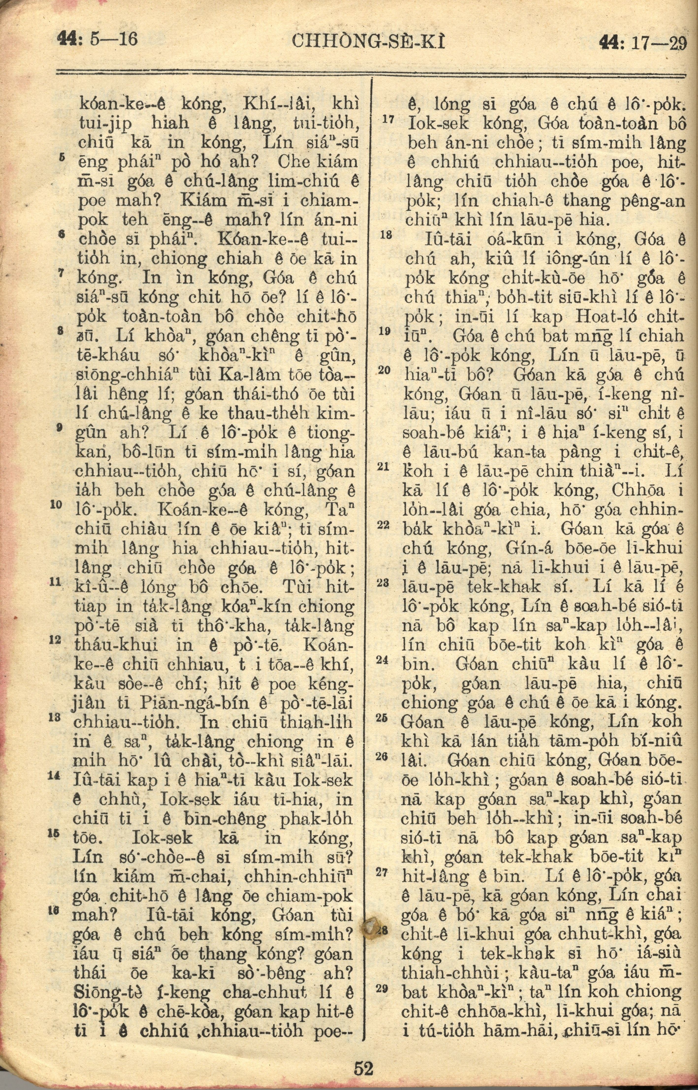 1957年巴克礼全罗台语圣经串珠版 创世记 44 章 5 节到 44 章 29 节