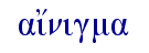 | 00135 αἴνιγμα, ατος, τό 名词 字义:「隐语」或「谜语」,引申为「不清的影像」。βλέπομεν δι᾽ ἐσόπτρου ἐν αἰνίγματι 对着镜子观看馍糊不清, 林前13:12 (参 民12:8 )。* 说明 |