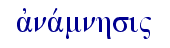 | 00364 ἀνάμνησις, εως, ἡ 名词 「想念,记念」。τινός对某事: ἀ. ἁμαρτιῶν 罪的提醒,指每年常献的祭物, 来10:3 。用于主餐-εἰς τὴν ἐμὴν ἀνάμνησιν 为的是记念我, 林前11:24,25 路22:19 ( 利24:7 ; 诗38:1 标题; 诗70:1 标题。指记念的祭物之意,参 民10:10 )。* 说明 |