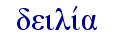 | 01167 δειλία, ας, ἡ 名词 「胆怯」。πνεῦμα δειλίας胆怯的心, 提后1:7 。* 说明 |
