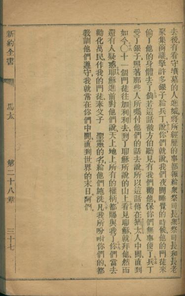 1872年官話新約全書 馬太福音 28 章 11 節到 28 章 20 節