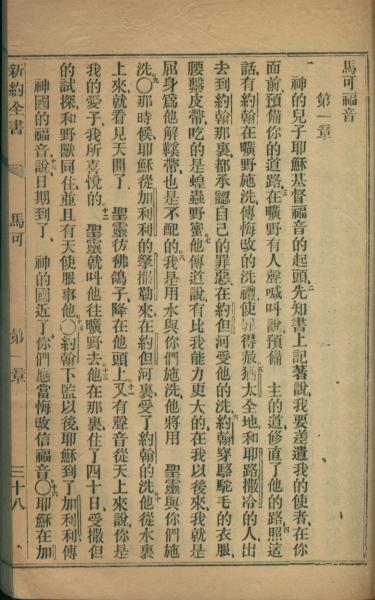 1872年官話新約全書 馬可福音 1 章 1 節到 1 章 16 節