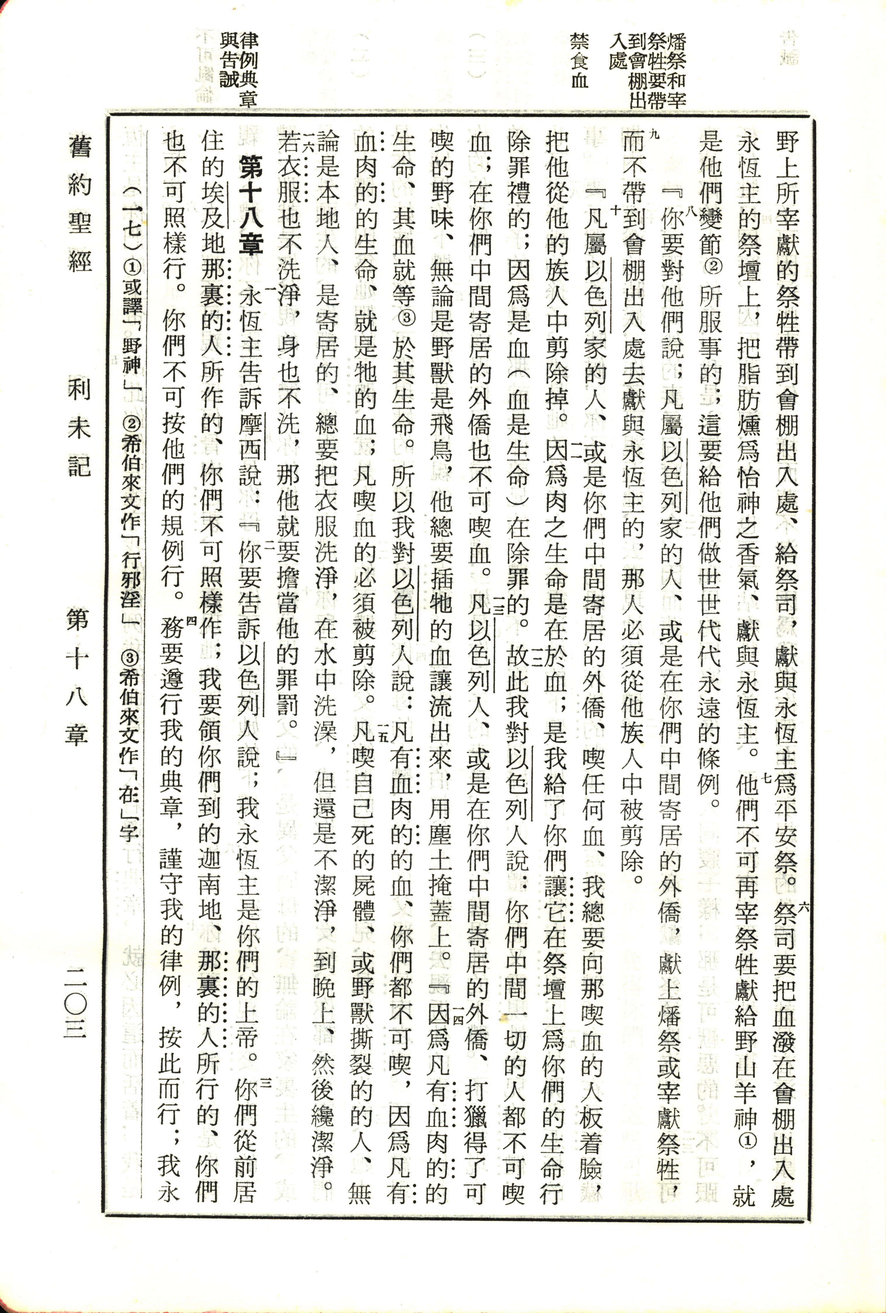 1970年新舊約全書(呂振中譯本) 利未記 17 章 6 節到 18 章 4 節