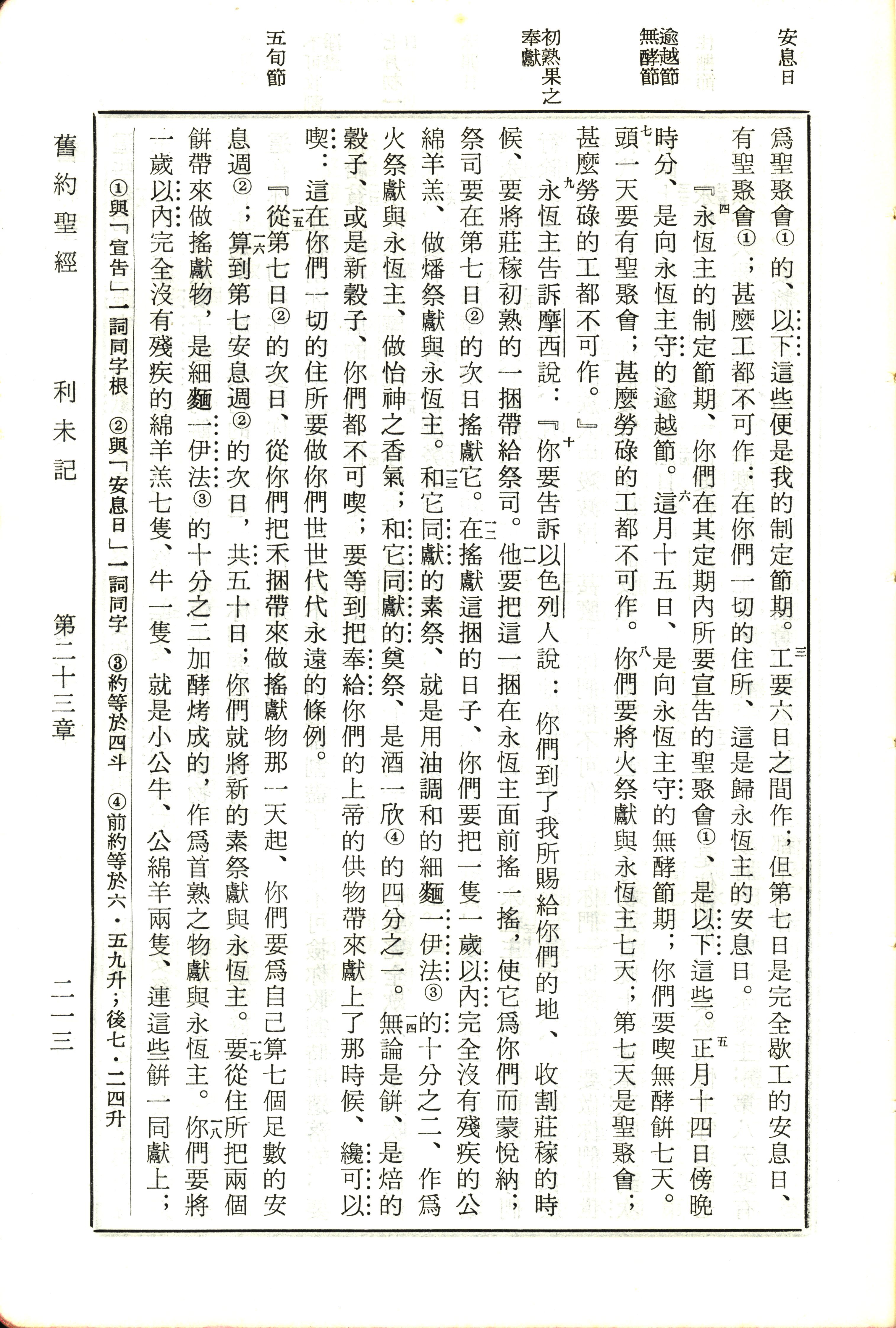 1970年新舊約全書(呂振中譯本) 利未記 23 章 3 節到 23 章 18 節