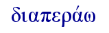 | 01276 διαπεράω 動詞 1不定式διεπέρασα。「越過」。獨立用法: 太9:1 14:34 。帶指定目的地, 可5:21 (參 申30:13 δ. εἰς τὸ πέραν 「過」到極處); 可6:53 ;Φοινίκην到腓尼基, 徒21:2 。帶啟程地和目的地:ἐκεῖθεν πρὸς ἡμᾶς δ. 從這邊過到你們那邊, 路16:26 。* 說明 |